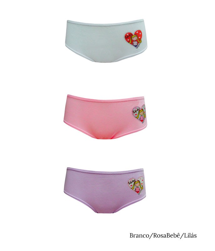 Kit com 3 Calcinhas Infantis Estampinha Brilhante Fofinha By Fofatex. Kit composto por 3 calcinhas de cores sortidas. Linda e charmosa estampinha brilhante de menininha envolvida por coraçãozinho de cores sortidas. Confeccionado em malha 100% algodão macia, leve e extremamente confortável. Cintura e cava das pernas em elástico suave para ajuste perfeito. Forro do fundo em tecido duplo de algodão. Composição: 100% Algodão.