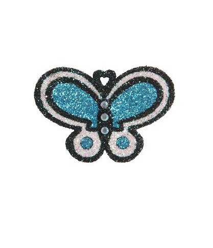 Tatuagem temporária em formato de borboleta, com muito brilho e glamour. Dimensões aproximadas: 5 cm (largura) por 3,5 cm (altura).
