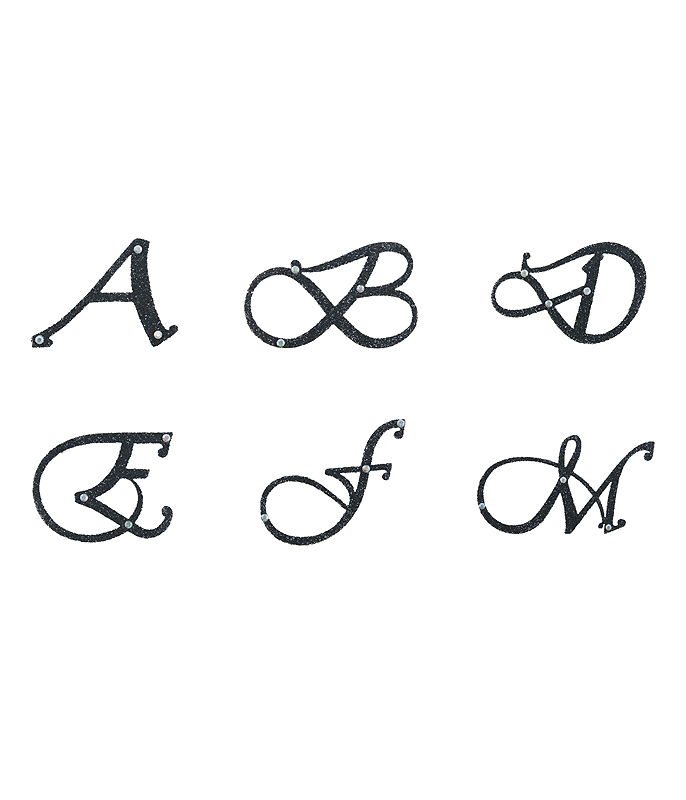 Tatuagem temporária em formato de letras em tipologia clássica com muito brilho e delicadas pedrinhas de strass enfeitando. Dimensão aproximada: 4 cm (Altura).