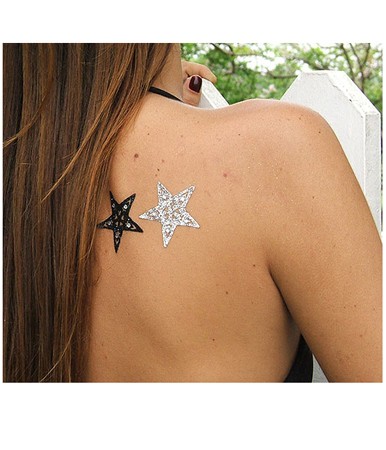 Tatuagem temporária em formato de estrela, com strass e muito brilho. ATENÇÃO: Embalagem com apenas 1 peça. Dimensões aproximadas : 5 cm (largura) por 4,5 cm (altura).